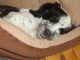 Alfie's half sister who is black and white ticked has a small patch of liver fur, I can't remember exactly where but I think it's on the underside of her jaw, this means that she carries a liver gene. However, Alfie is a light blue roan and he has a patch of colouring around his mouth the same as that in your photo of Jade but it's not 'genuine' liver or tan fur, it's definitely staining. He also has the same thing between the pads of his feet and again it's staining. It's not the same as the liver patch that his sis has.